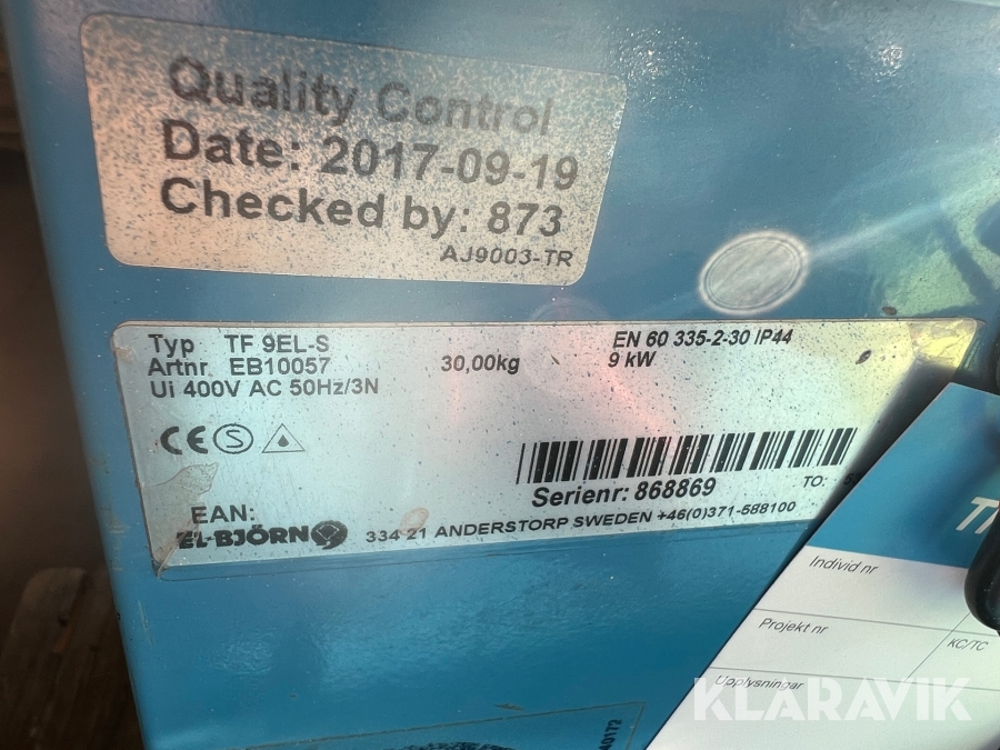 Varmluftsfläktar El-Björn TF 9EL