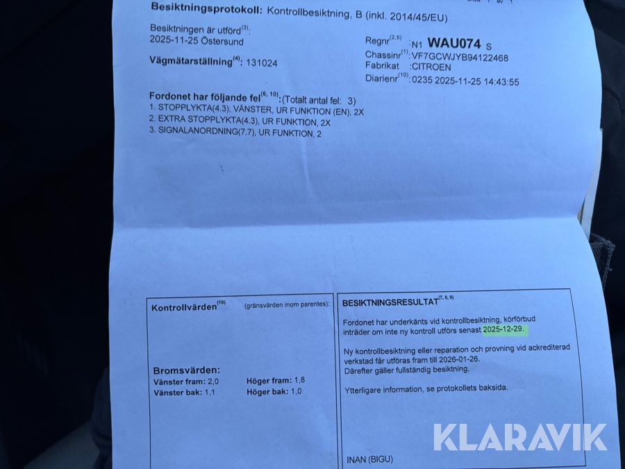Bromsljus åtgärdat efter besiktning