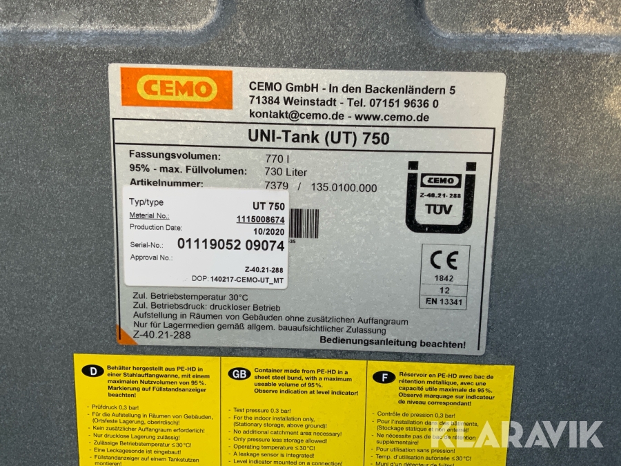 Dieseltank/dubbelmantlad Cemo Uni-Tank 750