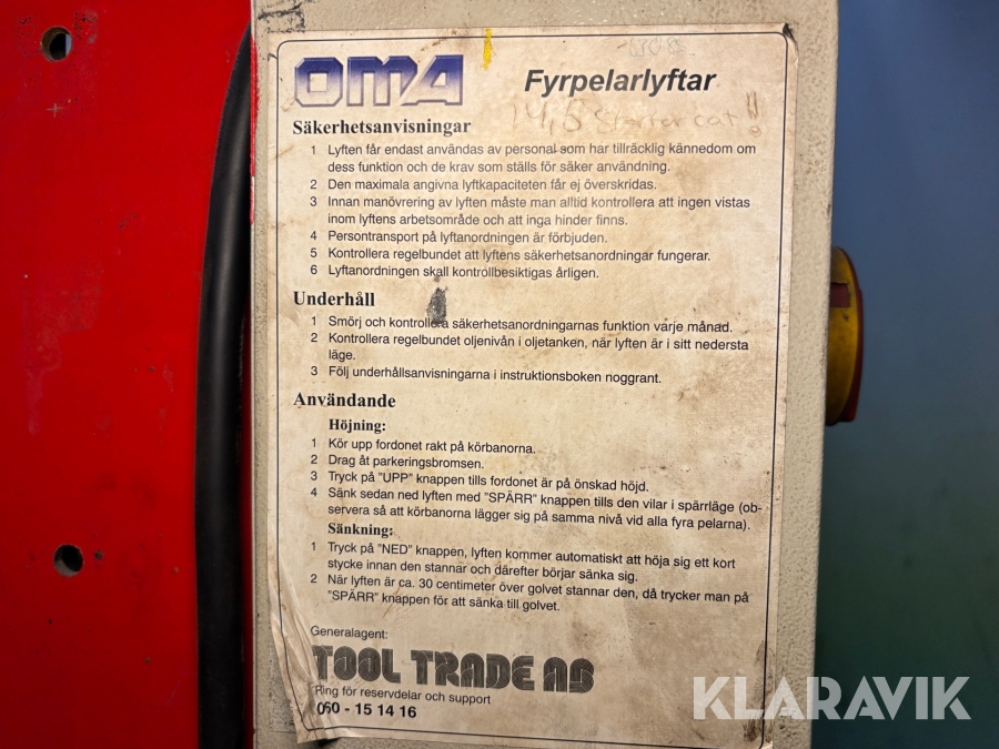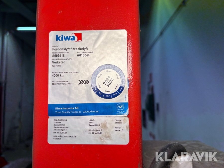 4-pelarlyft OMA 527 4000kg