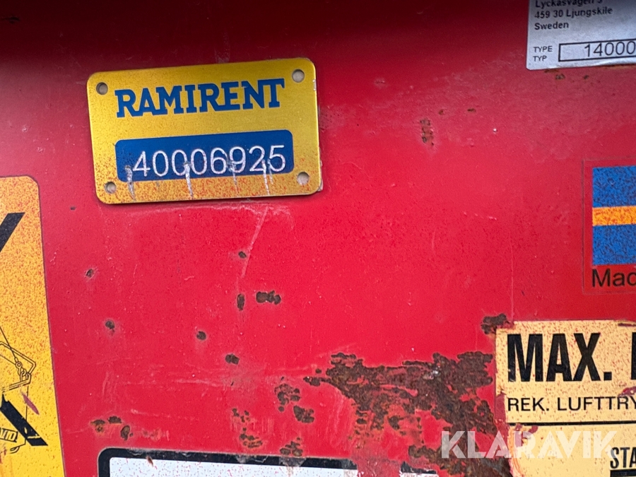 Pga platsbrist är det viktigt att du som köpare hämtar inom 12 dagar från auktionsavslut. Vid frågor om frakt kontakta trade@ramirent.se.