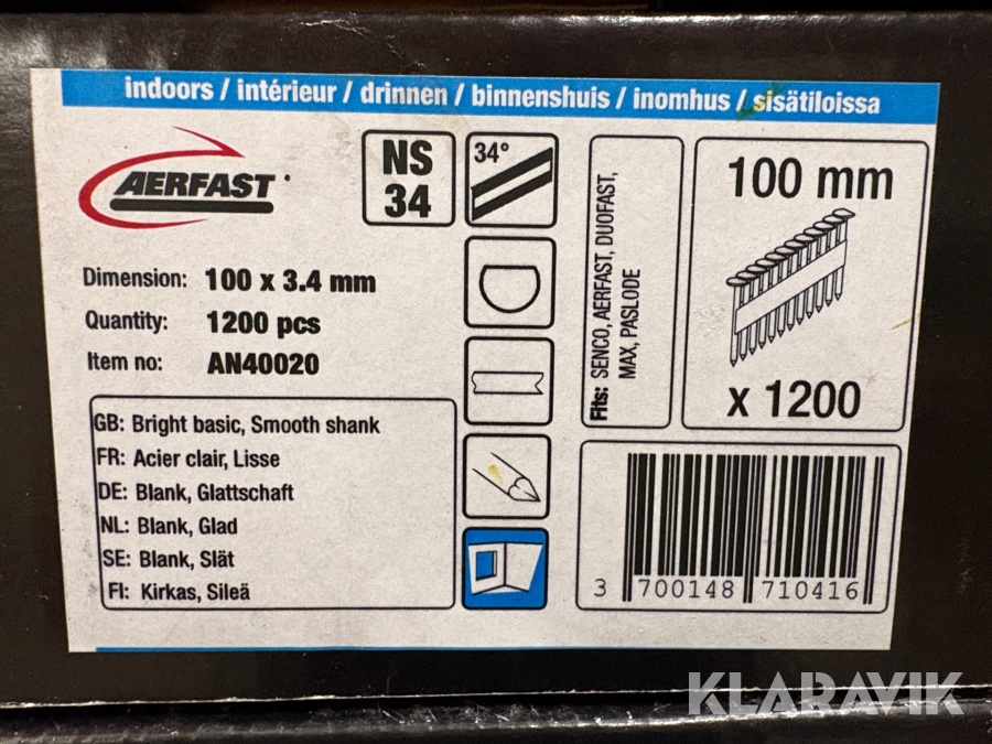 Spik till spikpistol Aerfast AN40020 100x3.4mm, 13200st
