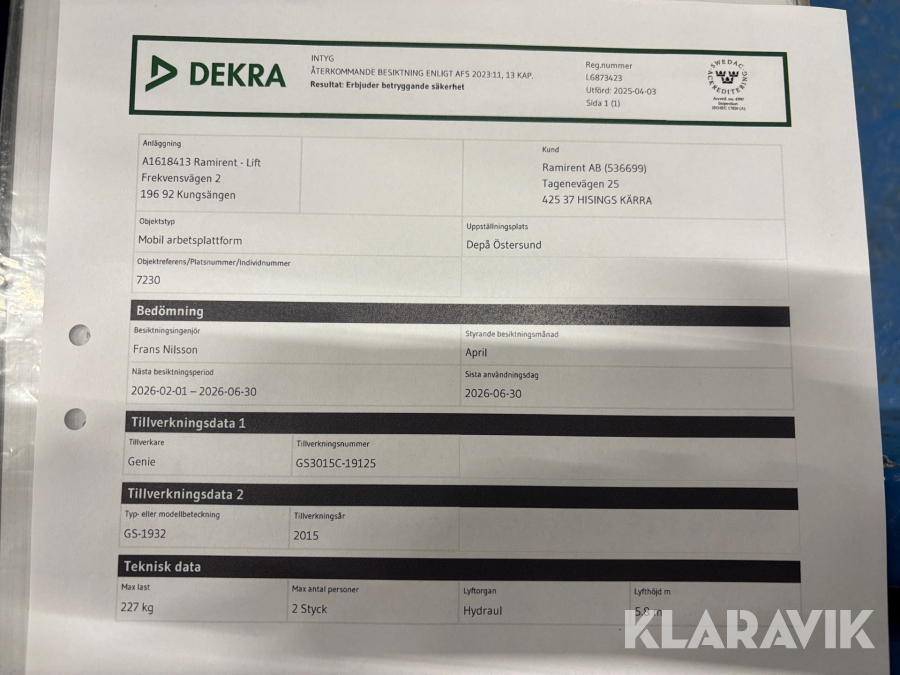 Läs om metodikenPga platsbrist är det viktigt att du som köpare hämtar inom 12 dagar från auktionsavslut. Vid frågor om frakt kontakta trade@ramirent.se.