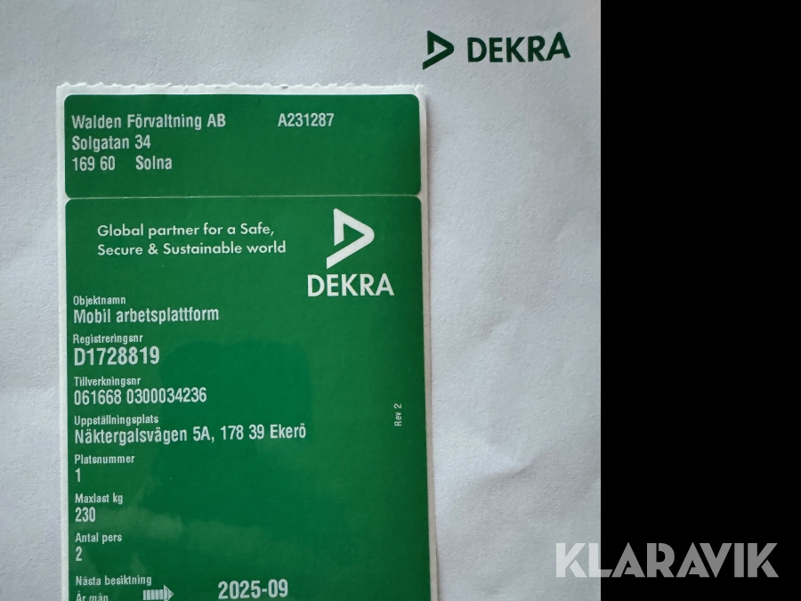 Du som köpare är skyldig att kontrollera objektet vid hämtning. Skiljer sig något avsevärt jämfört med informationen på klaravik.se? Kontakta då Klaravik innan du tar objektet från platsen. Läs fullständiga köpvillkor.