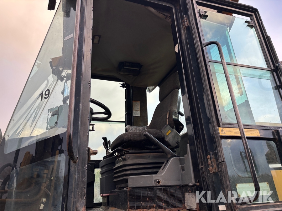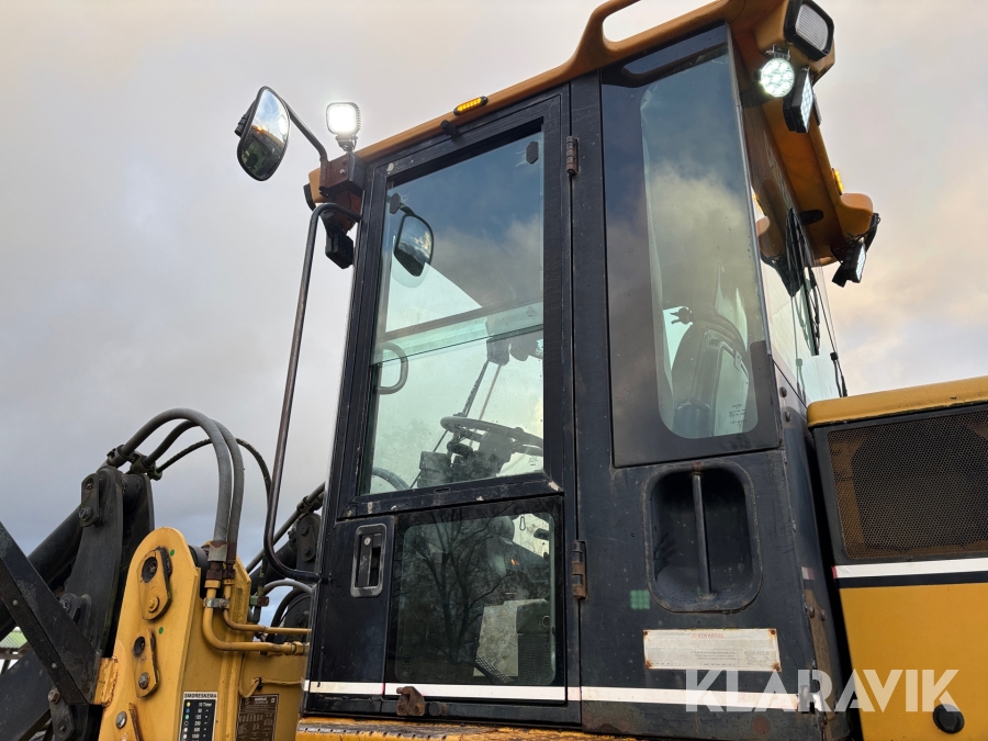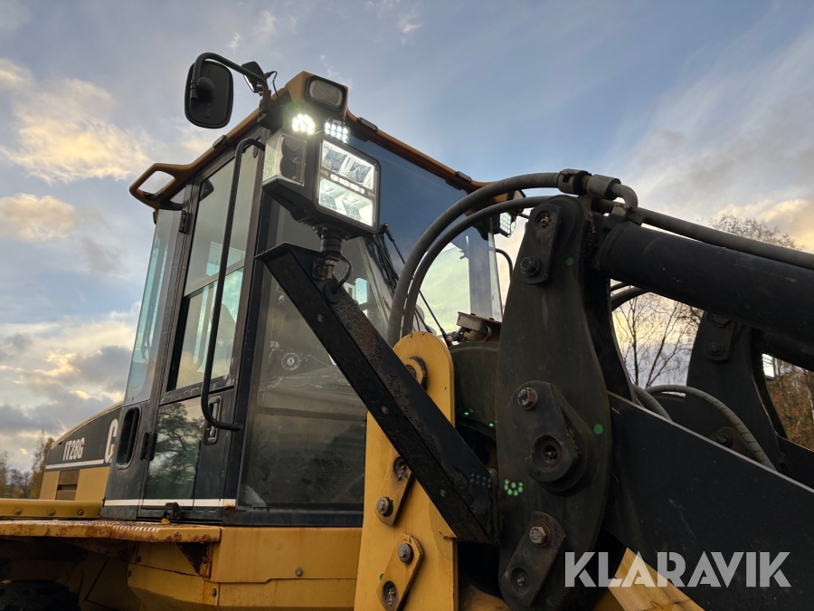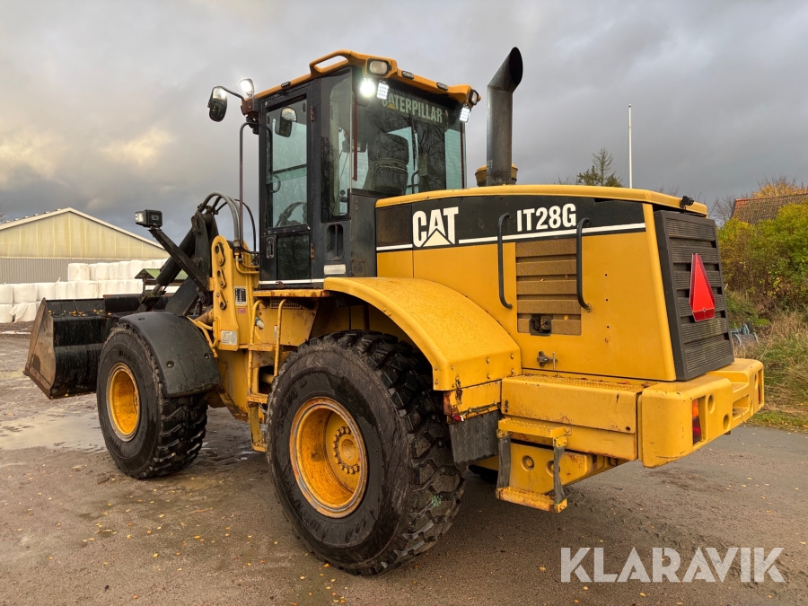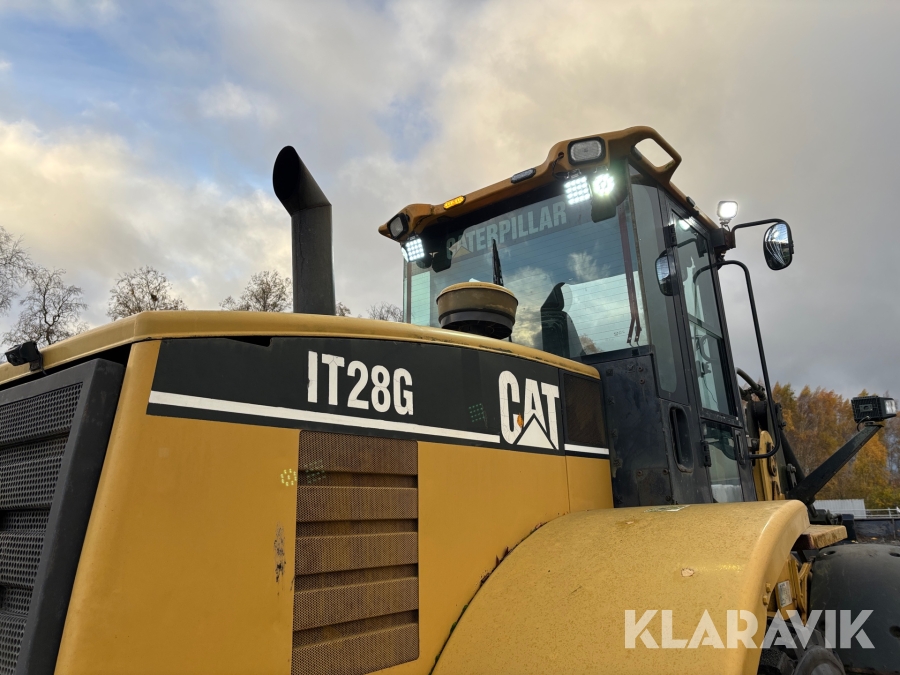 Hjullastare CAT IT28G med skopa, gafflar och snökedjor