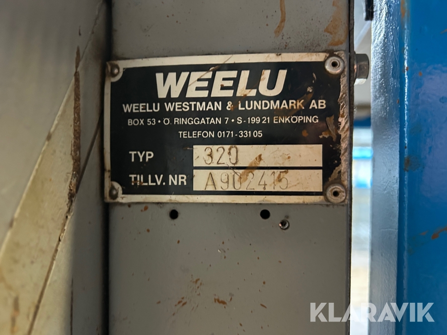 1st bockmaskin : Weelu 320 , tillverkningsnr: A902415, drivs med 3-fas