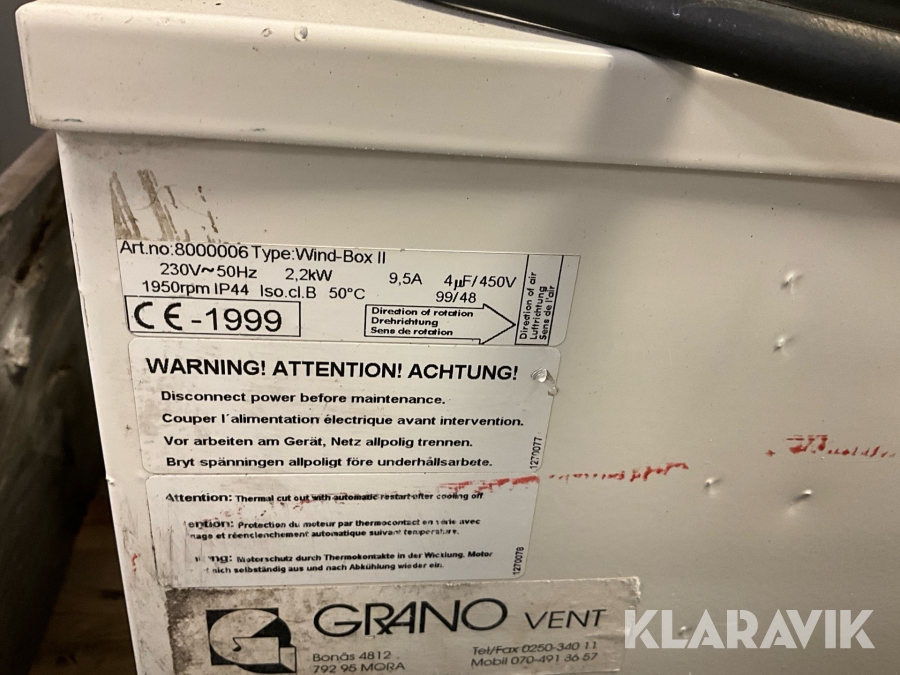 Boka frakt? Det finns ingen specifik information om frakt för just det här objektet, men om du skickar oss en förfrågan via vårt fraktformulär, så undersöker vi möjligheten. Paket, EU-pall eller större maskin? Klaravik har fraktavtal med Schenker och i de fall vi kan hjälpa till med frakt gäller det objekt som ryms i paket eller inom en EU-pall (upp till 120*80 cm och 990 kg). Det går att beställa frakt inom Sverige, dock inte till utlandet. Vid frakt på större maskiner rekommenderar vi gärna transportföretag som du kan kontakta.
