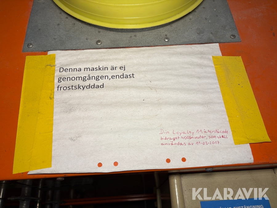 Boka frakt? Det finns ingen specifik information om frakt för just det här objektet, men om du skickar oss en förfrågan via vårt fraktformulär, så undersöker vi möjligheten. Paket, EU-pall eller större maskin? Klaravik har fraktavtal med Schenker och i de fall vi kan hjälpa till med frakt gäller det objekt som ryms i paket eller inom en EU-pall (upp till 120*80 cm och 990 kg). Det går att beställa frakt inom Sverige, dock inte till utlandet. Vid frakt på större maskiner rekommenderar vi gärna transportföretag som du kan kontakta.