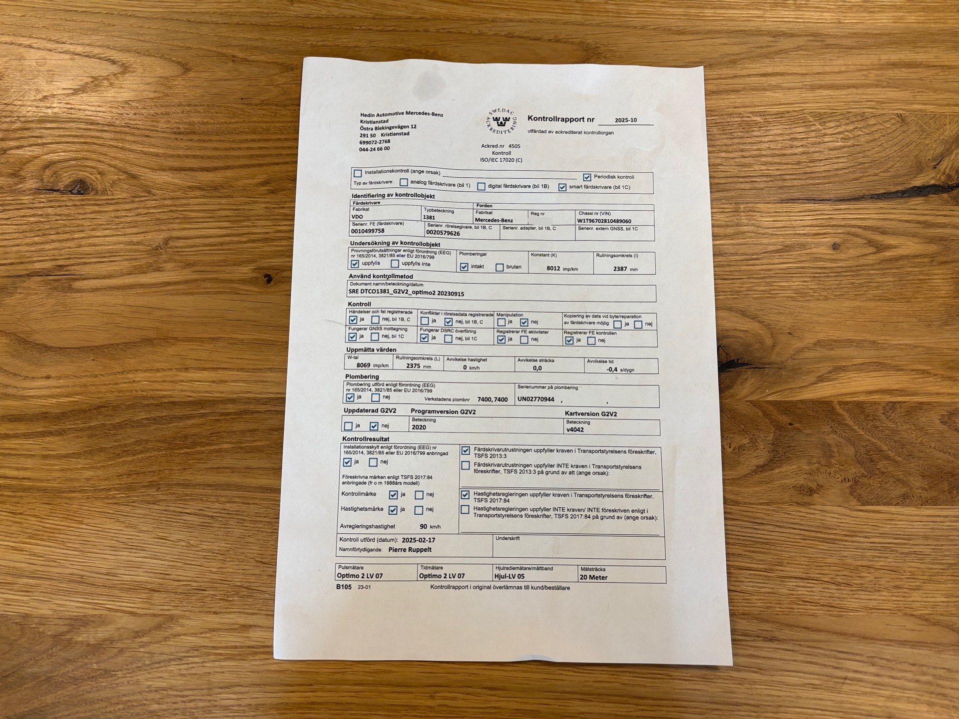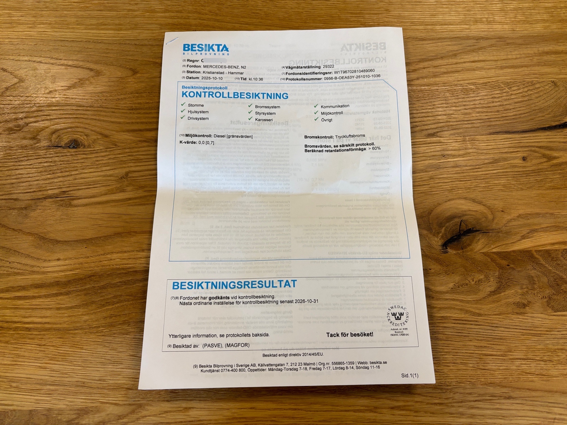• Serie/chassinummer framgår