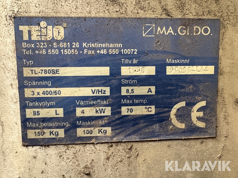 Boka frakt? Det finns ingen specifik information om frakt för just det här objektet, men om du skickar oss en förfrågan via vårt fraktformulär, så undersöker vi möjligheten. Paket, EU-pall eller större maskin? Klaravik har fraktavtal med Schenker och i de fall vi kan hjälpa till med frakt gäller det objekt som ryms i paket eller inom en EU-pall (upp till 120*80 cm och 990 kg). Det går att beställa frakt inom Sverige, dock inte till utlandet. Vid frakt på större maskiner rekommenderar vi gärna transportföretag som du kan kontakta.