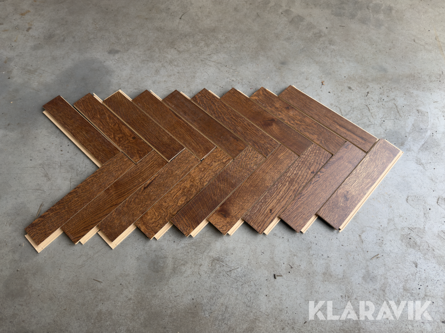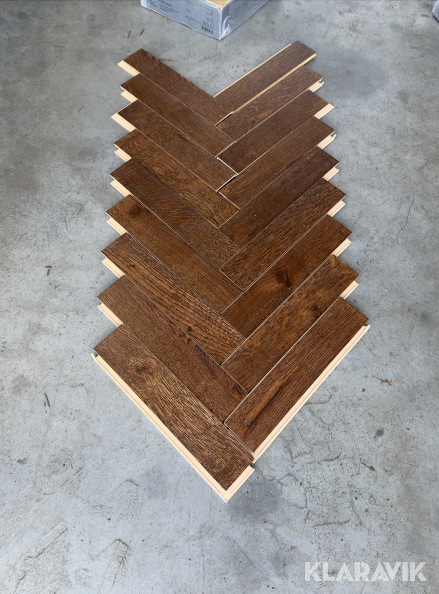 Fiskbensparkett, brunt, lackat,rustik, 5-G klick, Välinge 86kvm