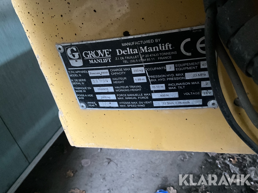 Pelarlift Grove Manlift Toucan 1010