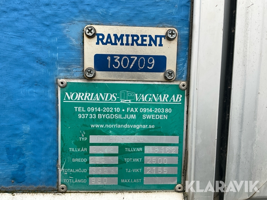 Pga platsbrist är det viktigt att du som köpare hämtar inom 12 dagar från auktionsavslut. Vid frågor om frakt kontakta trade@ramirent.se.