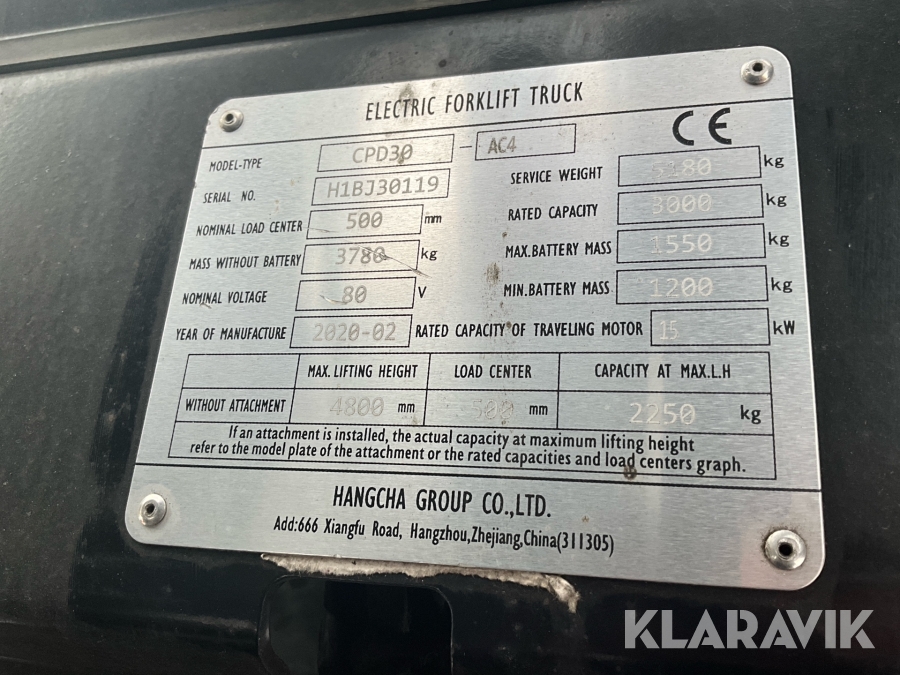 Motviktstruck Hangcha CPD 30-AC4