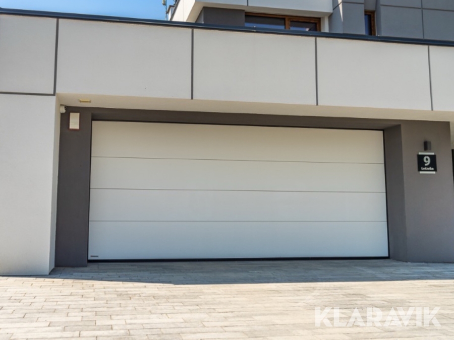 Takskjutport Doormaster L-Rib träådring inklusive motordrift.