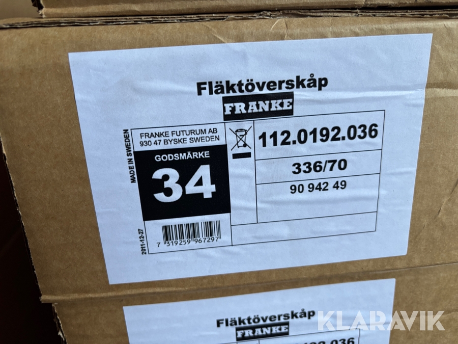 Fläktöverskåp Franke 336/70 - Totalt 20st