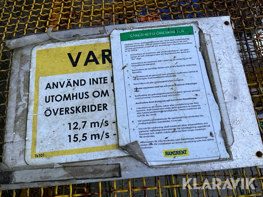 Läs om metodikenPga platsbrist är det viktigt att du som köpare hämtar inom 12 dagar från auktionsavslut. Vid frågor om frakt kontakta trade@ramirent.se.