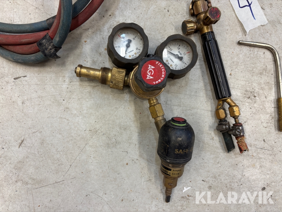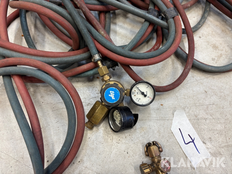 Gasslang med munstycke och gasklockor