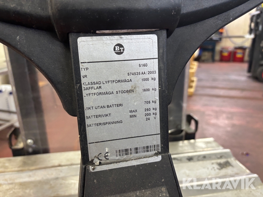 Ståstaplare BT S16D 1600kg / 2100mm