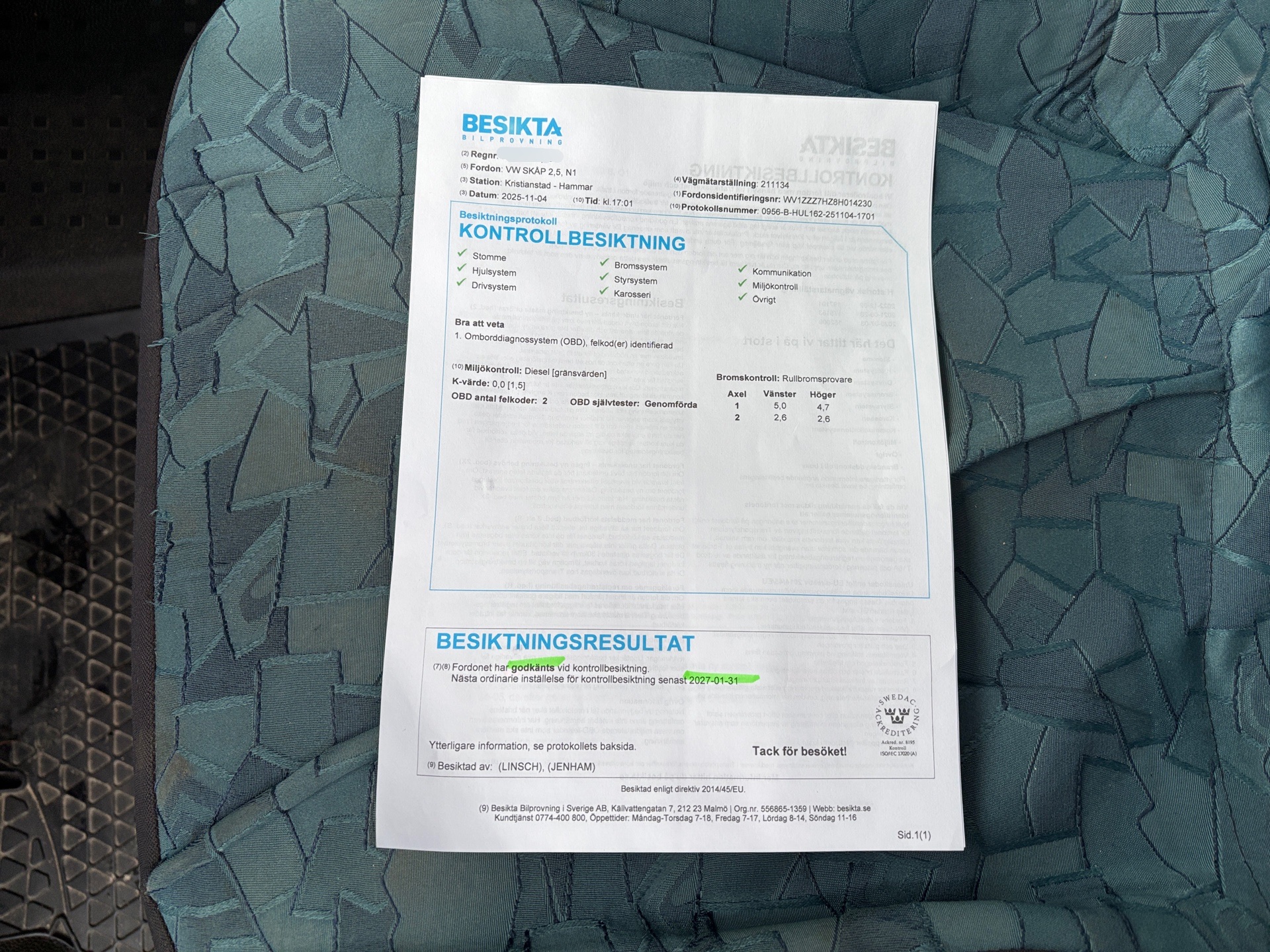 • Serie/chassinummer framgår