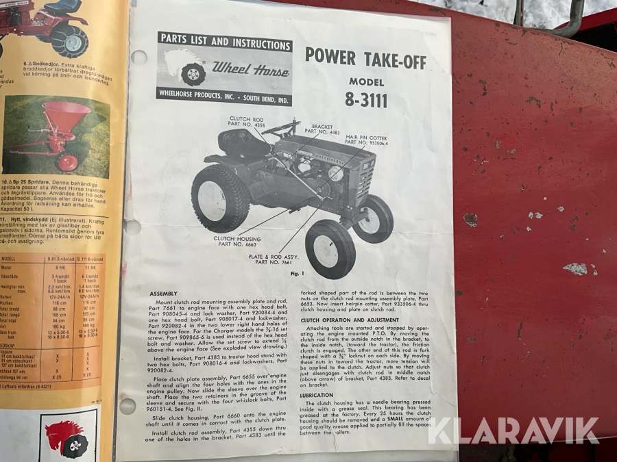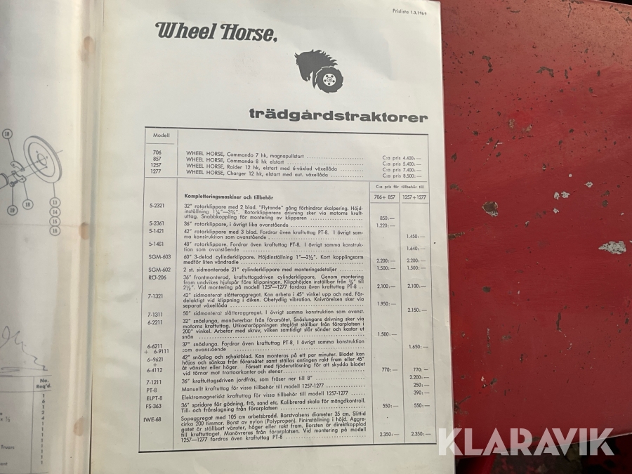 Redskapsbärare Wheel Horse Charger 12 med flera redskap