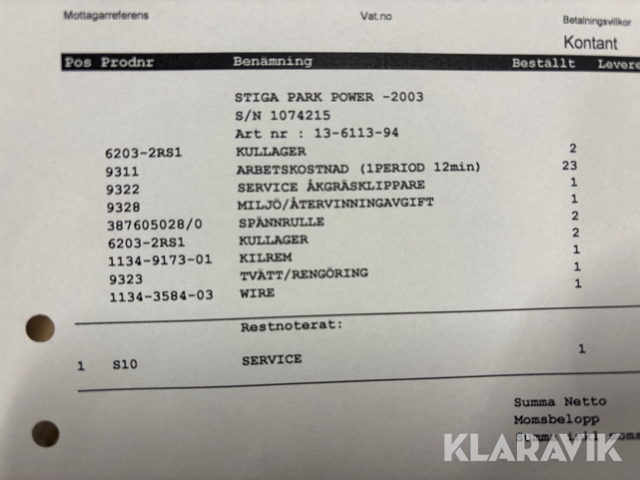 Du som köpare är skyldig att kontrollera objektet vid hämtning. Skiljer sig något avsevärt jämfört med informationen på klaravik.se? Kontakta då Klaravik innan du tar objektet från platsen. Läs fullständiga köpvillkor.