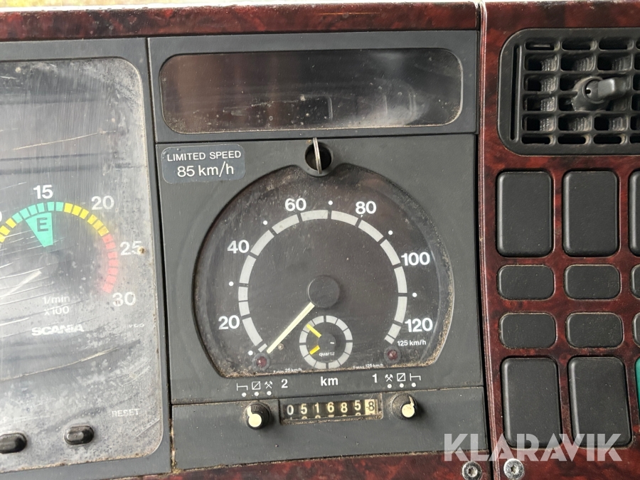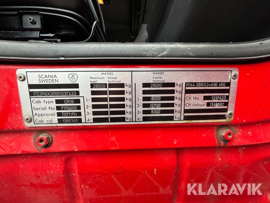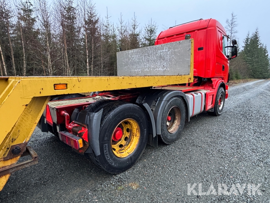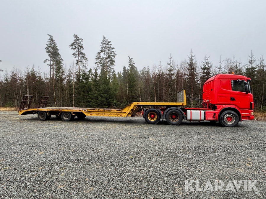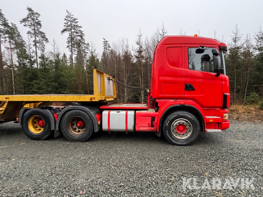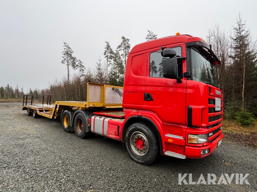 Lastbil Scania R144GB6X2NB med trailer