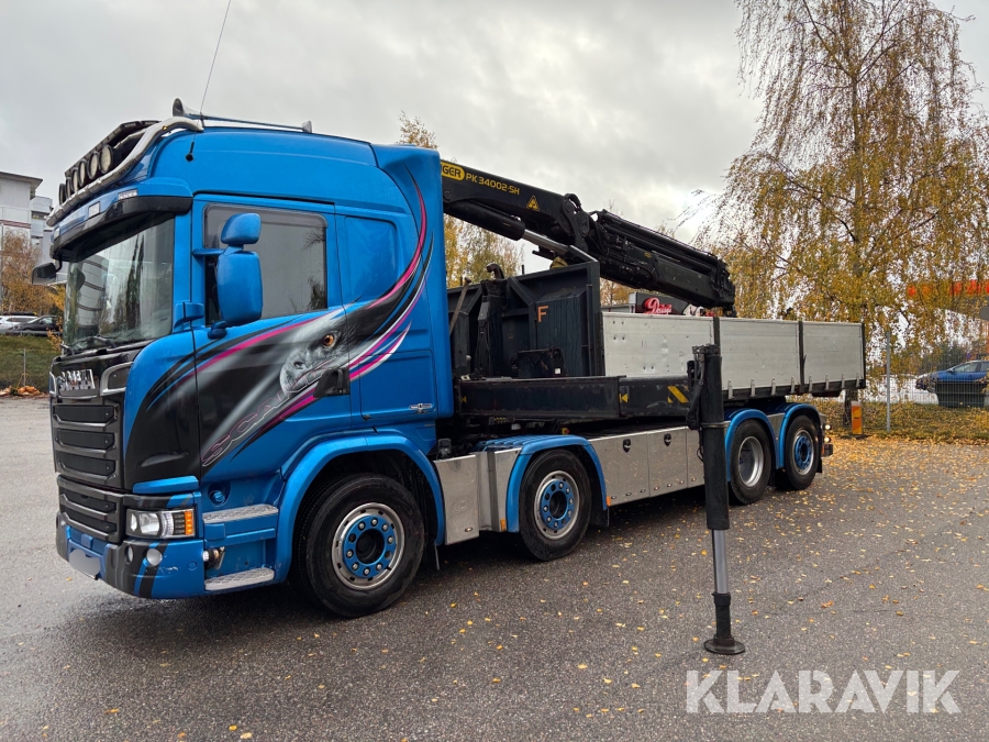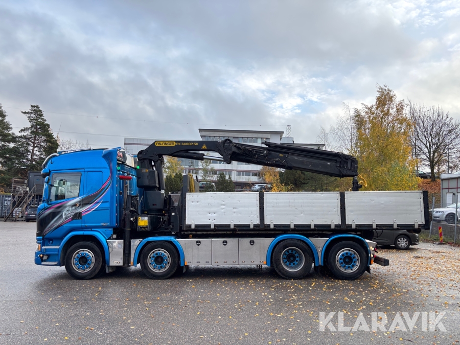Kranväxlare Scania G490 8x2 489hk, med Palfingerkran & gripskopa
