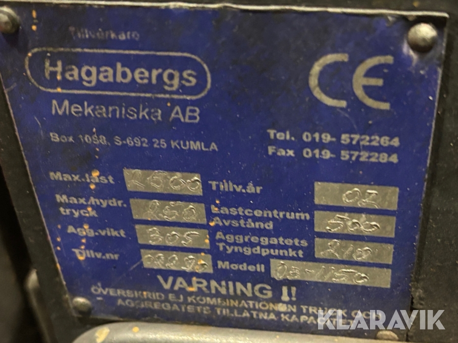 Boka frakt? Det finns ingen specifik information om frakt för just det här objektet, men om du skickar oss en förfrågan via vårt fraktformulär, så undersöker vi möjligheten. Paket, EU-pall eller större maskin? Klaravik har fraktavtal med Schenker och i de fall vi kan hjälpa till med frakt gäller det objekt som ryms i paket eller inom en EU-pall (upp till 120*80 cm och 990 kg). Det går att beställa frakt inom Sverige, dock inte till utlandet. Vid frakt på större maskiner rekommenderar vi gärna transportföretag som du kan kontakta.