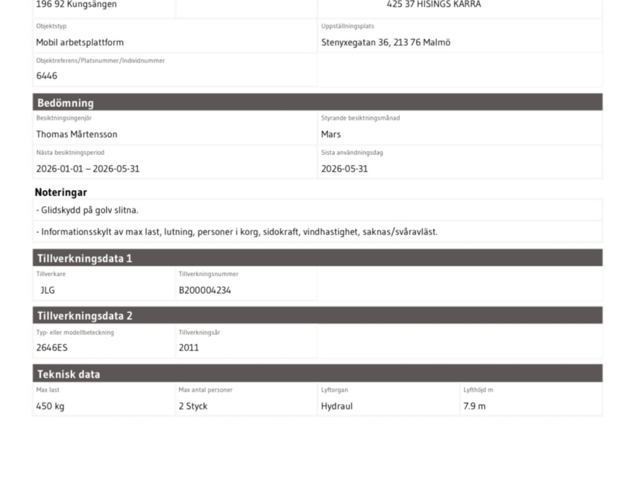Vår auktionsmäklare gör en genomgång av objektet och samlar in information om objektets skick och användning från säljaren. Däremot görs ingen teknisk besiktning. Som köpare förväntas du därför göra en egen granskning av presenterat text-, bild- och eventuellt filmmaterial.