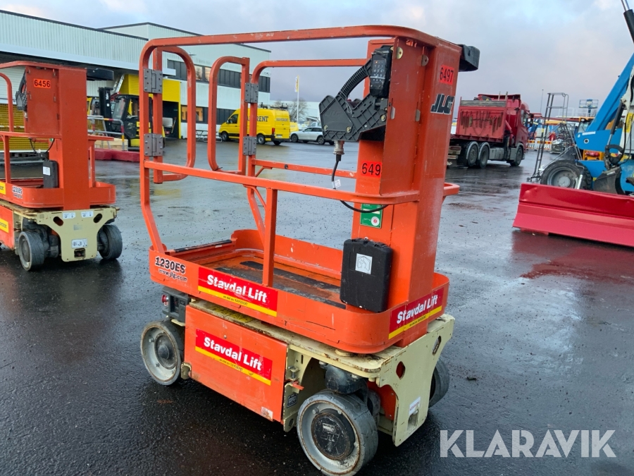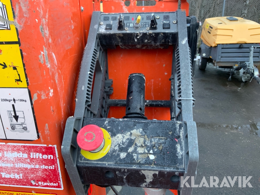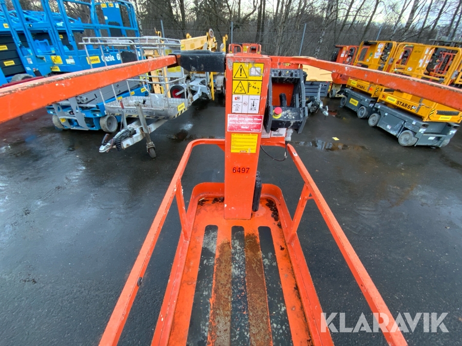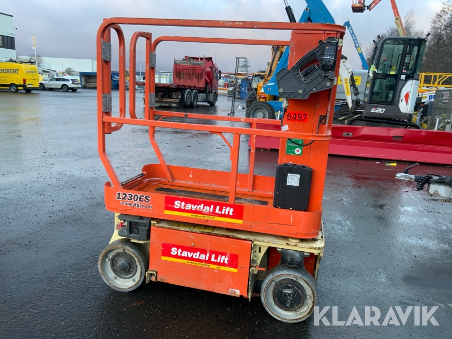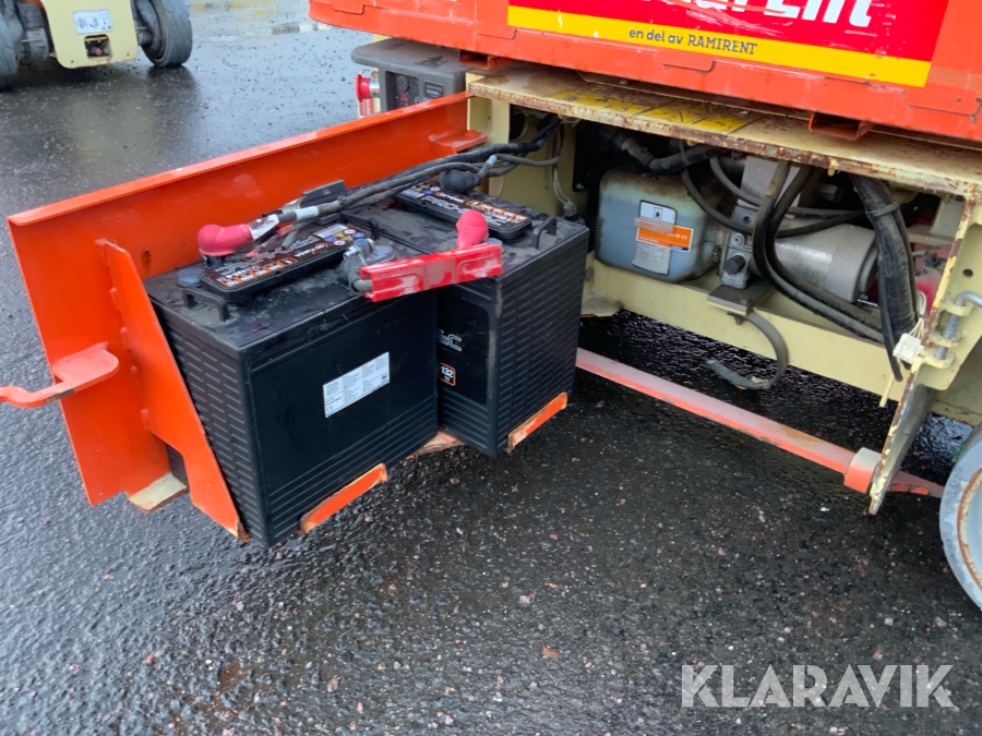 JLG 1230ES är en kompakt och eldriven pelarlift som är idealisk för arbete på höjd i trånga inomhusmiljöer. Med en arbetshöjd på upp till 5,66 meter och en plattformskapacitet på 230 kg erbjuder den en stabil och säker arbetsplattform för en person med verktyg. Dess smala bredd på endast 0,76 meter och låga vikt på cirka 790 kg gör den lätt att manövrera genom standarddörrar och i hissar, vilket underlättar arbete i begränsade utrymmen. Med en svängradie på endast 13 cm och en körhastighet på upp till 4,8 km/h i nedfällt läge är den mycket lättmanövrerad. Säkerhetsfunktioner som lutningssensor, potthålsskydd och varningslarm är standard, vilket gör JLG 1230ES till ett pålitligt val för underhålls- och installationsarbeten inomhus.
