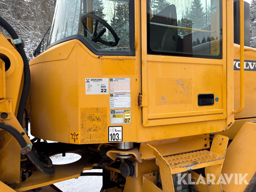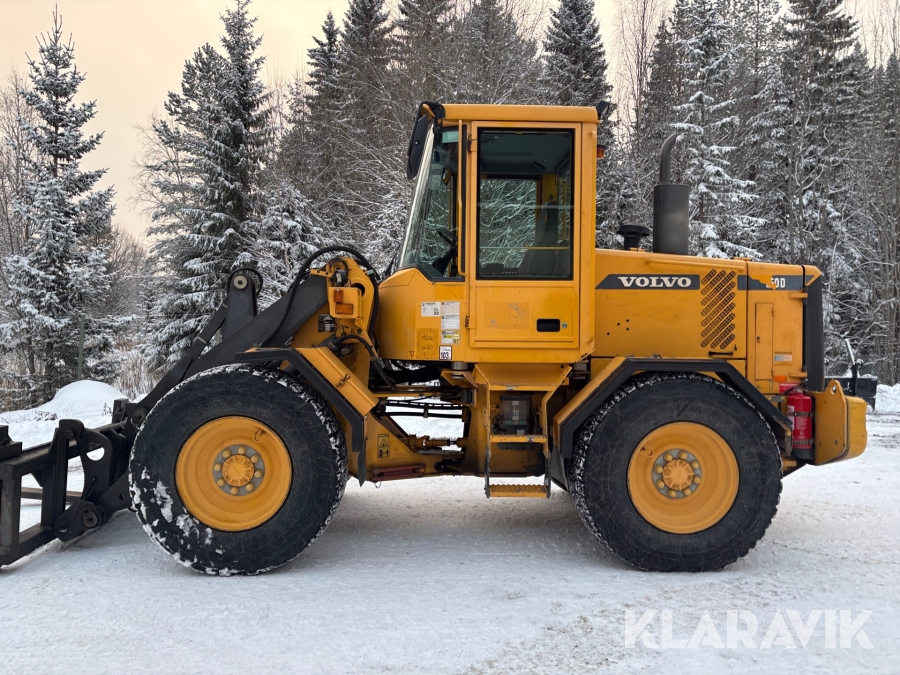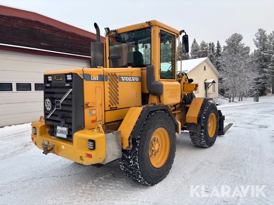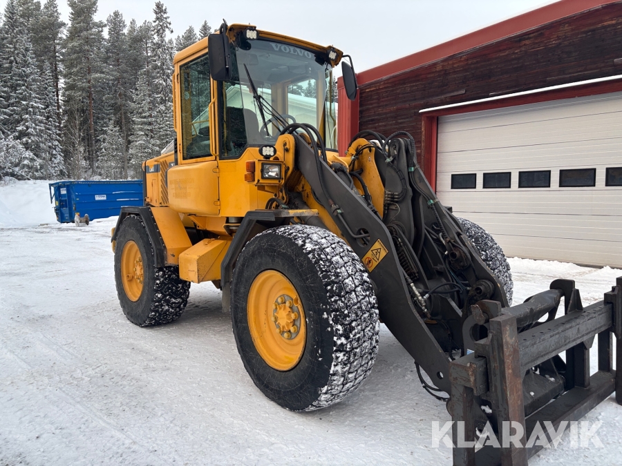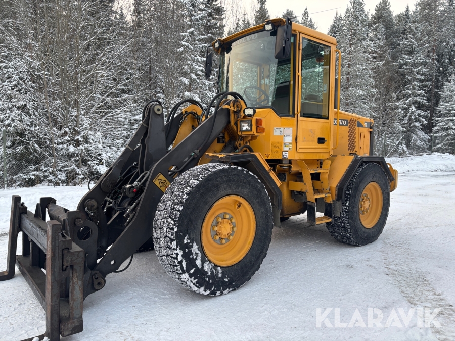 Hjullastare Volvo L50D med vikplog, skopa & gafflar