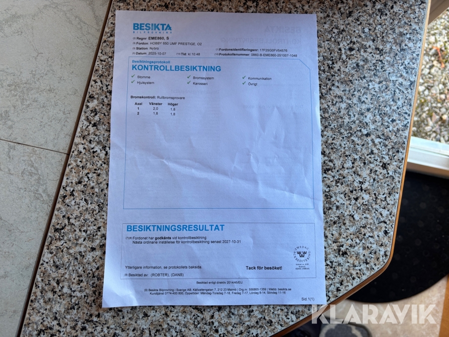 Du som köpare är skyldig att kontrollera objektet vid hämtning. Skiljer sig något avsevärt jämfört med informationen på klaravik.se? Kontakta då Klaravik innan du tar objektet från platsen. Läs fullständiga köpvillkor.