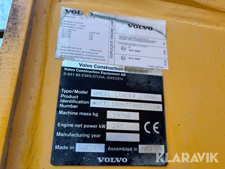 Hjullastare Volvo L180H med skopa