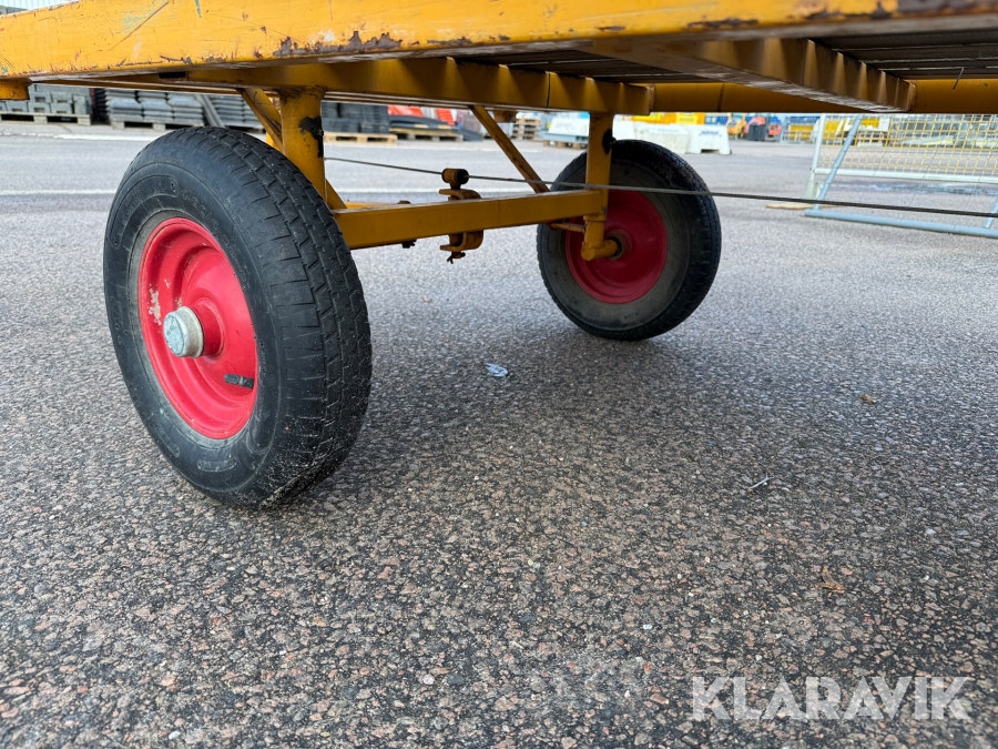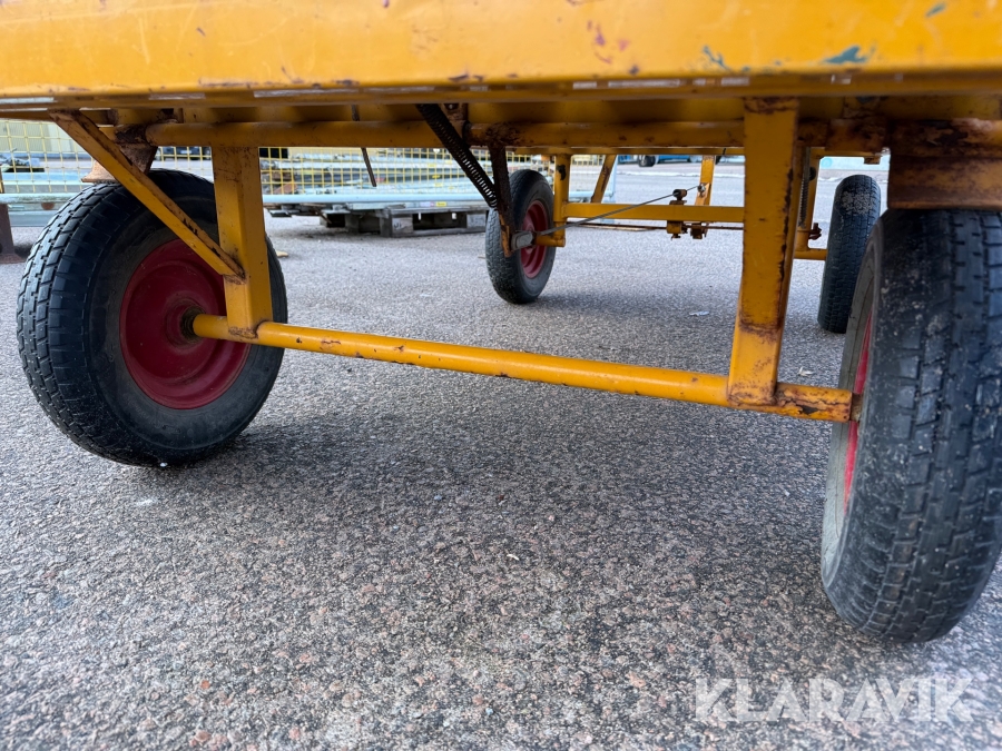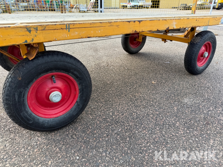 En fyrhjuls transportvagn med styrning på två hjul