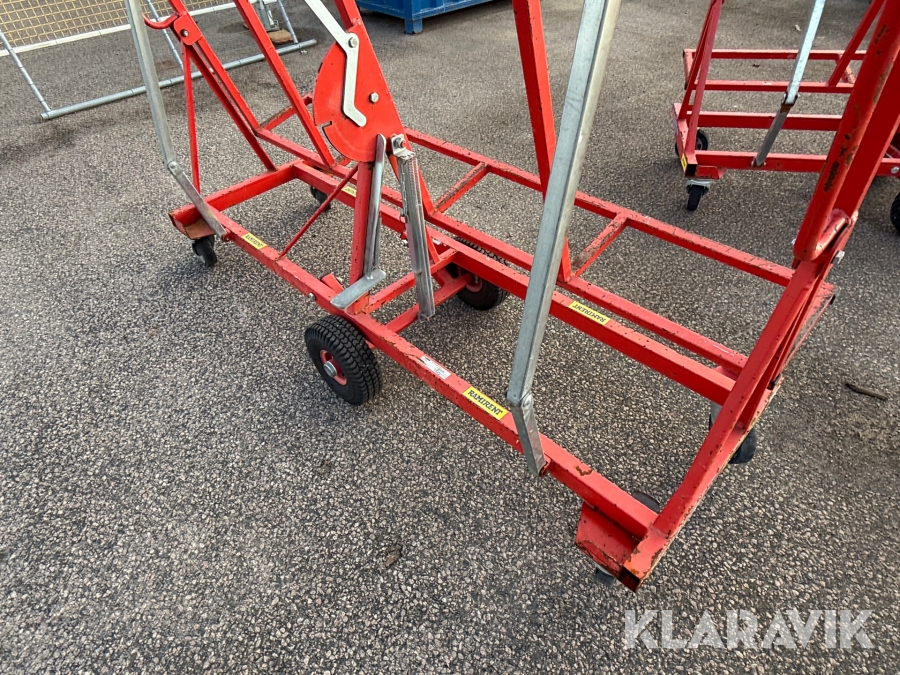 Skivvagnens funktion är att kunna förflytta gipsmaterial och skivor på ett enkelt och smidigt sätt från gipsbockar till monteringsplatsen. Tack vare dess smarta konstruktion kan du även nyttja skivvagnen för att skära till och anpassa ditt gipsmaterial direkt på plats, innan det ska vidare för montering.