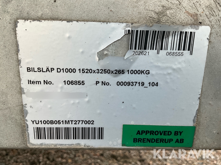 Personbilssläp Brenderup D1000