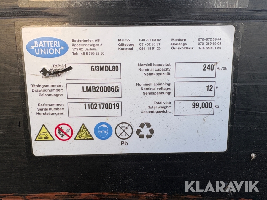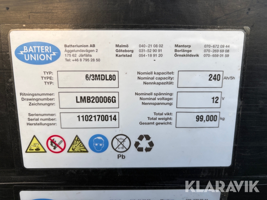 Boka frakt? Det finns ingen specifik information om frakt för just det här objektet, men om du skickar oss en förfrågan via vårt fraktformulär, så undersöker vi möjligheten. Paket, EU-pall eller större maskin? Klaravik har fraktavtal med Schenker och i de fall vi kan hjälpa till med frakt gäller det objekt som ryms i paket eller inom en EU-pall (upp till 120*80 cm och 990 kg). Det går att beställa frakt inom Sverige, dock inte till utlandet. Vid frakt på större maskiner rekommenderar vi gärna transportföretag som du kan kontakta.