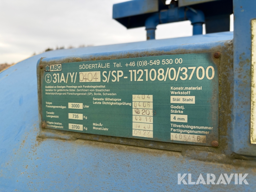 Tank ABG 3 Kubik på lastväxlarram
