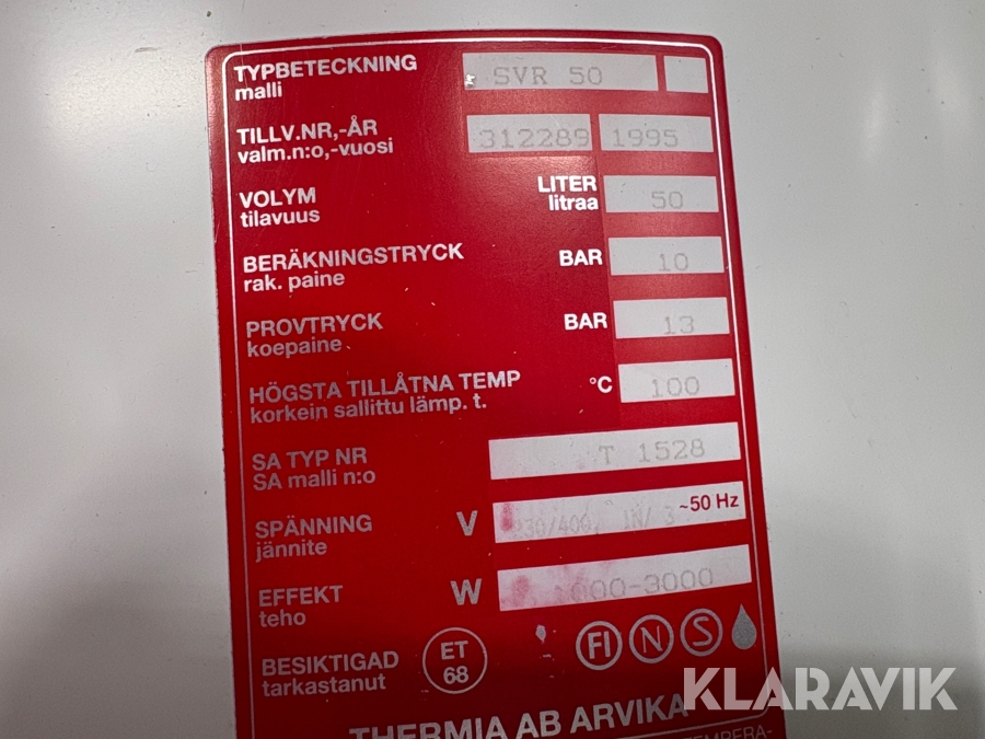 Varmvattenberedare Thermia SVR50