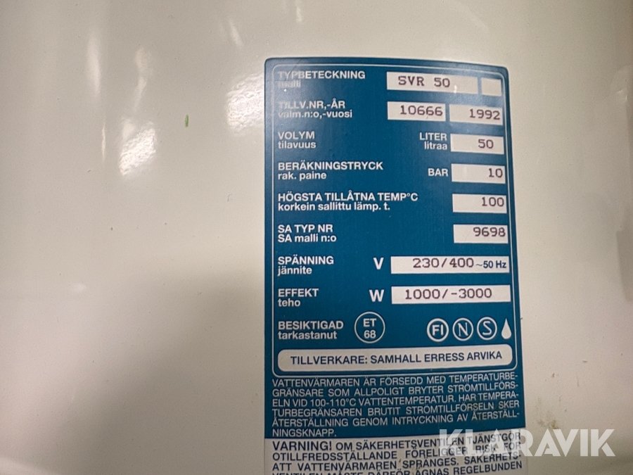 Varmvattenberedare Samhall Erress SVR50
