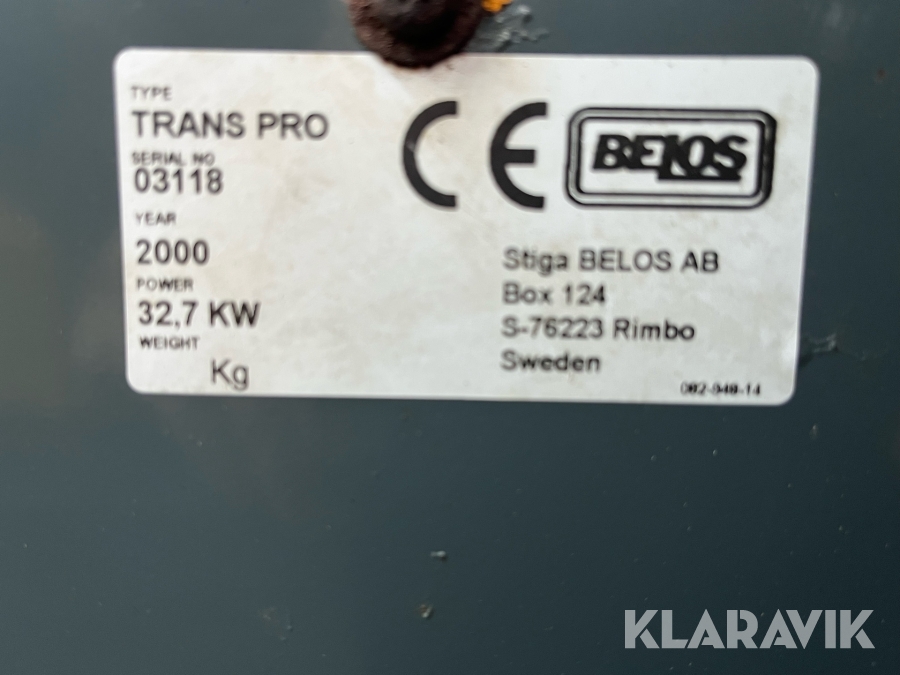 Boka frakt? Det finns ingen specifik information om frakt för just det här objektet, men om du skickar oss en förfrågan via vårt fraktformulär, så undersöker vi möjligheten. Paket, EU-pall eller större maskin? Klaravik har fraktavtal med Schenker och i de fall vi kan hjälpa till med frakt gäller det objekt som ryms i paket eller inom en EU-pall (upp till 120*80 cm och 990 kg). Det går att beställa frakt inom Sverige, dock inte till utlandet. Vid frakt på större maskiner rekommenderar vi gärna transportföretag som du kan kontakta.