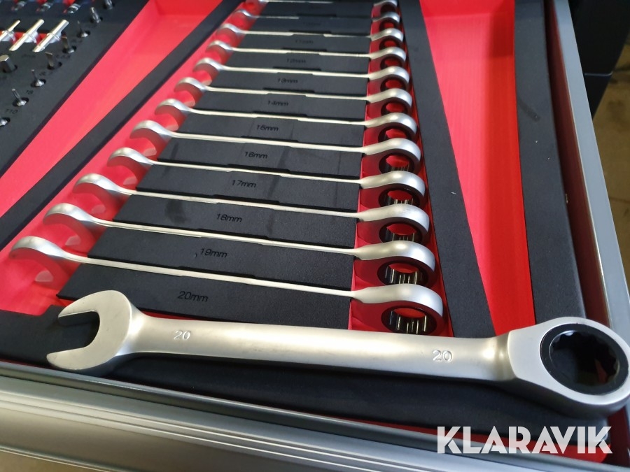 - Hylsnyckelset, skruvmejslar, ringnycklar med spärrfunktion, hållare och diverse tänger