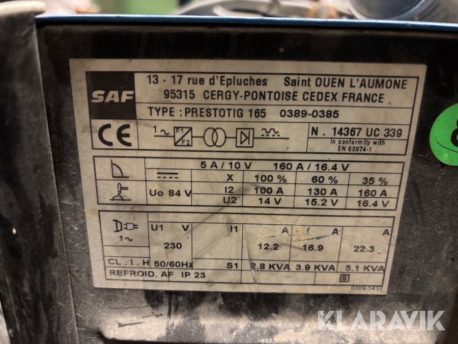 TIG svets SAF Prestotig 165