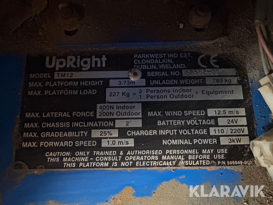 Pelarlift UpRight TM12