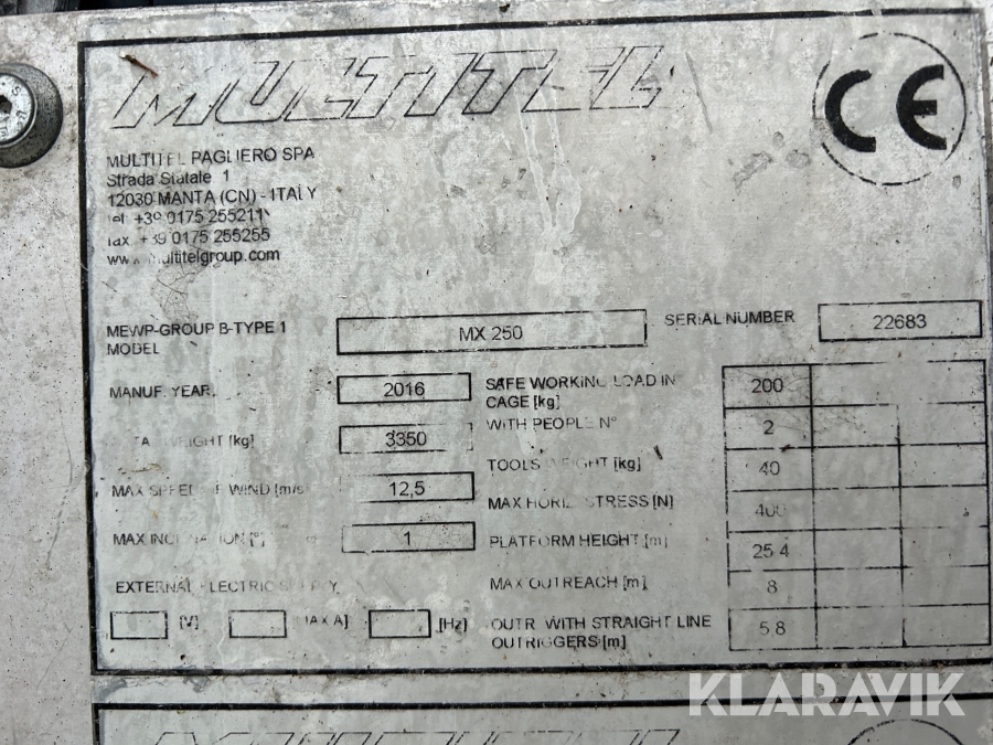 Boka frakt? Det finns ingen specifik information om frakt för just det här objektet, men om du skickar oss en förfrågan via vårt fraktformulär, så undersöker vi möjligheten. Paket, EU-pall eller större maskin? Klaravik har fraktavtal med Schenker och i de fall vi kan hjälpa till med frakt gäller det objekt som ryms i paket eller inom en EU-pall (upp till 120*80 cm och 990 kg). Det går att beställa frakt inom Sverige, dock inte till utlandet. Vid frakt på större maskiner rekommenderar vi gärna transportföretag som du kan kontakta.