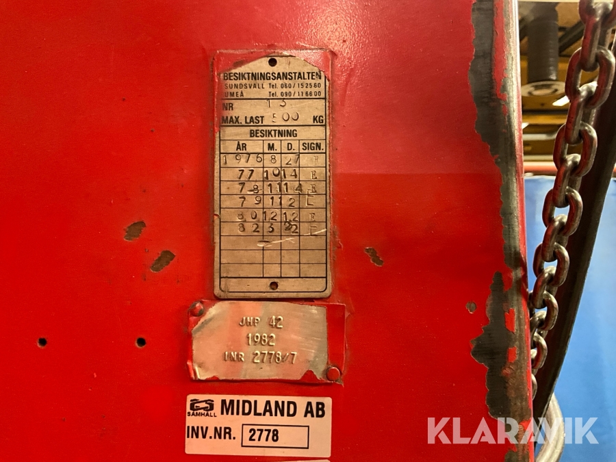 Boka frakt? Det finns ingen specifik information om frakt för just det här objektet, men om du skickar oss en förfrågan via vårt fraktformulär, så undersöker vi möjligheten. Paket, EU-pall eller större maskin? Klaravik har fraktavtal med Schenker och i de fall vi kan hjälpa till med frakt gäller det objekt som ryms i paket eller inom en EU-pall (upp till 120*80 cm och 990 kg). Det går att beställa frakt inom Sverige, dock inte till utlandet. Vid frakt på större maskiner rekommenderar vi gärna transportföretag som du kan kontakta.
