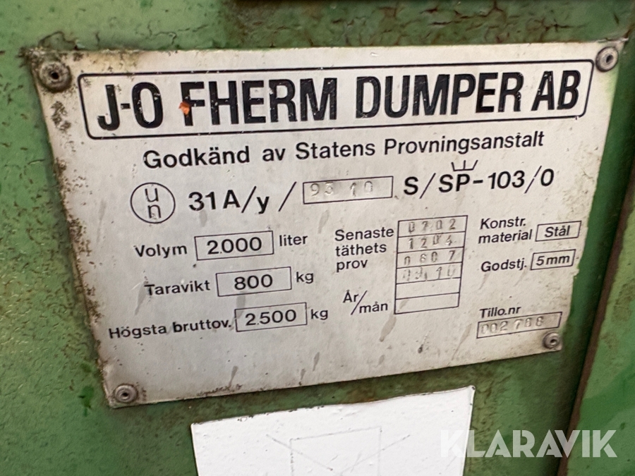 Bränsletank J-O Fherm Dumper Ab