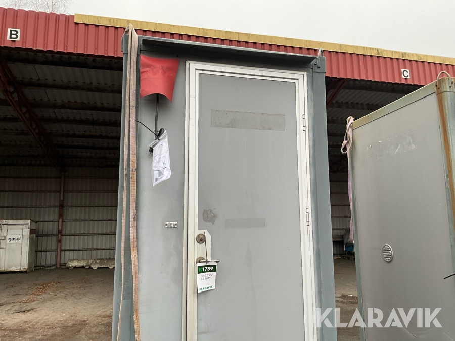 For sheds and containers (10 feet and larger), loading assistance can be purchased. Payment is made either by invoice or by card at the seller's location. The cost per lift is SEK 500 + VAT.