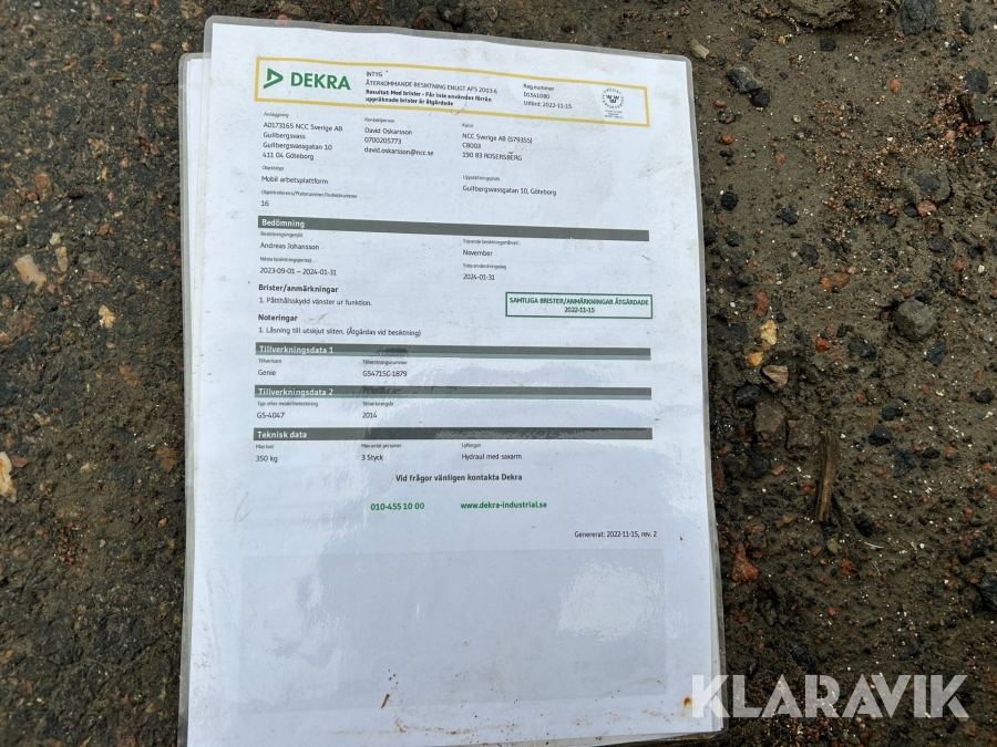 Du som köpare är skyldig att kontrollera objektet vid hämtning. Skiljer sig något avsevärt jämfört med informationen på klaravik.se? Kontakta då Klaravik innan du tar objektet från platsen. Läs fullständiga köpvillkor.